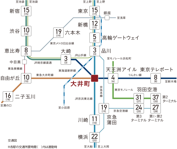 ※各駅の交通所要時間( )内は通勤時