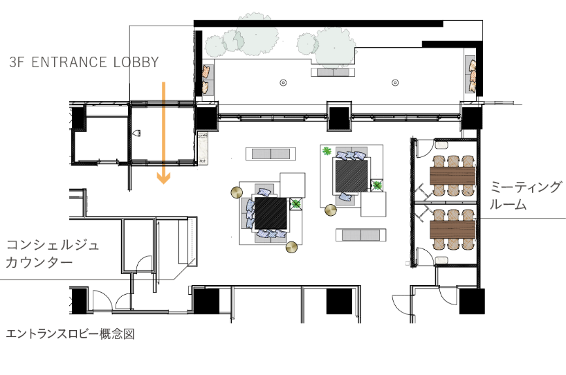 3階エントランスロビーにはコンシェルジュカウンターとミーティングルームをご用意。